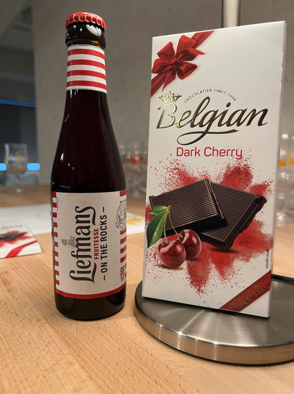 リーフマンスは、5種類のベリー系果実を加えたフルーツ・ビール。果実味、ほのかな甘みと酸味が調和した非常にバランスの良いビールで、ビールが苦手な方にもおすすめ。リーフマンスには、チェリー系のチョコレートとペアリングすると口の中で馴染む味わいを楽しめる。なおホワイトチョコレートにも合わせることができるので、ぜひお試しあれ!